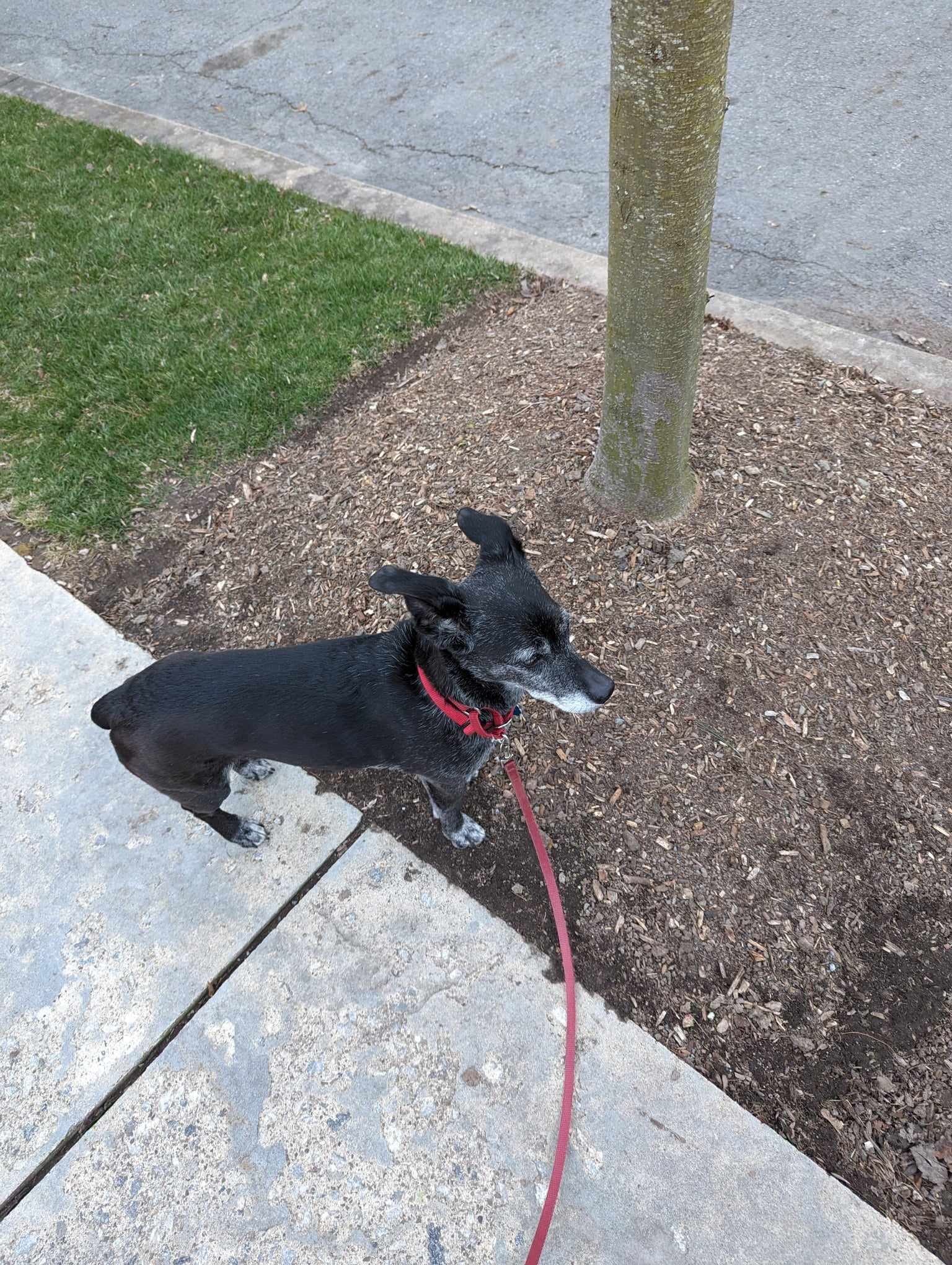 So, I watch my step when I walk Ruby around the neighborhood on these bright mornings and blustery evenings. The old trees in this neighborhood shed branches the way our cats shed fur, copiously and visibly. The dead branches they drop are gray and mottled and blend in with the bluestone gravel sidewalks that run along either side of the streets in our town, so they’re hard to see. For the aging, of which I am one, the fallen tree limbs are a hazard, so the town has dispatched workers to pick them up and cart them away.