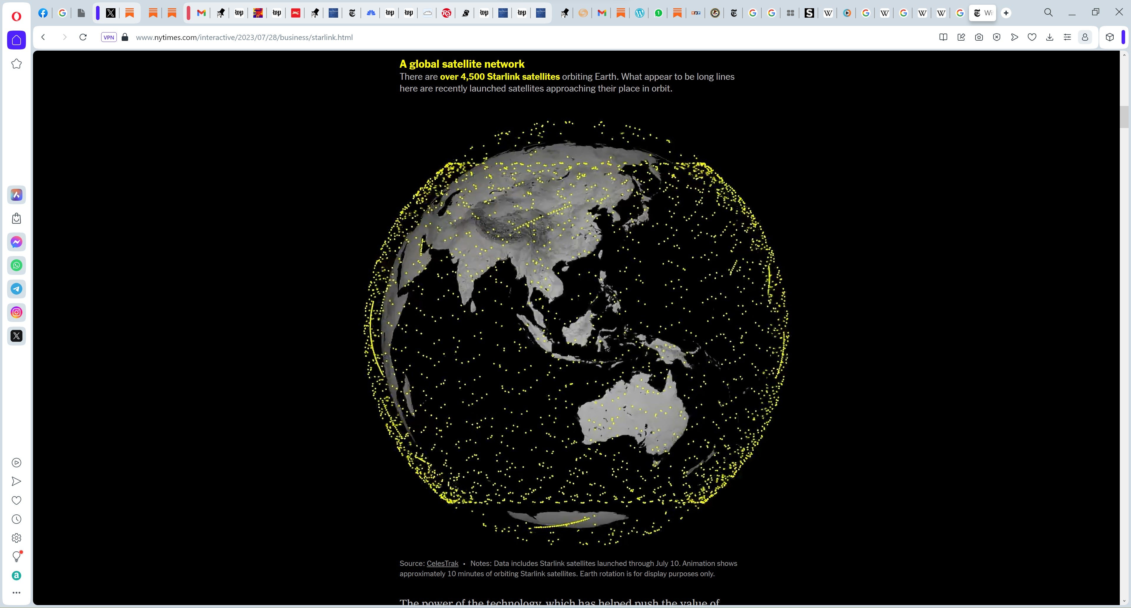 The New York Times in its recent article on Musk and Starlink ran this illustration of where the satellites are, shown here as a screenshot of an animated illustration: